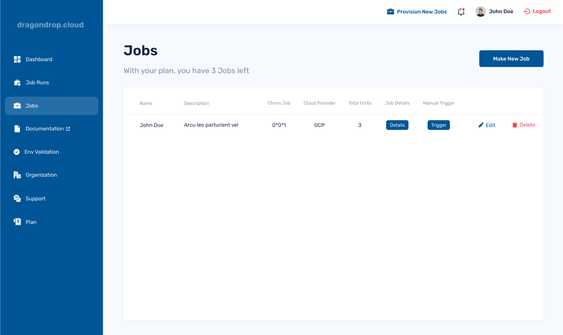 When creating a Job, you can specify a chron job for when the Job should be run. dragondrop will then take care of the rest, triggering your job on the specified schedule.